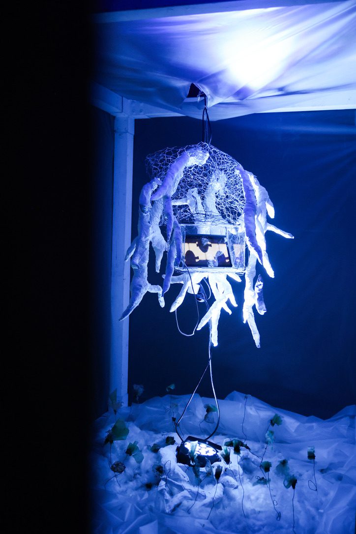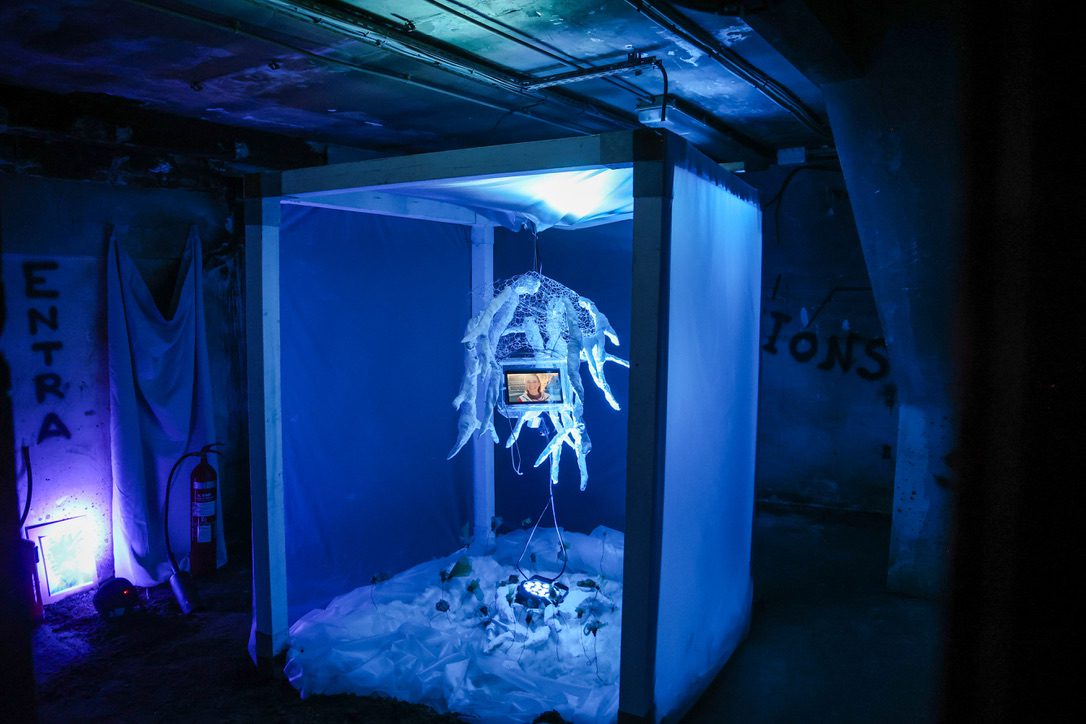 Som Il·lusions és una instal·lació immersiva que convida a reflexionar sobre la connexió entre la natura i l’ésser humà, entre el visible i l’invisible, entre allò tangible i allò intangible. L’artista construeix un cub translúcid fet de cortines de plàstic reciclat, un espai fràgil i alhora infranquejable, on les siluetes dels visitants es projecten de forma difusa, simbolitzant la connexió humana amb allò que no sempre veiem però que és present.Al centre, una arrel emergeix del sostre, simbolitzant una natura que fuig però que alhora s’eleva per rescatar-nos, recordant-nos la nostra dependència d’allò que sovint oblidem.