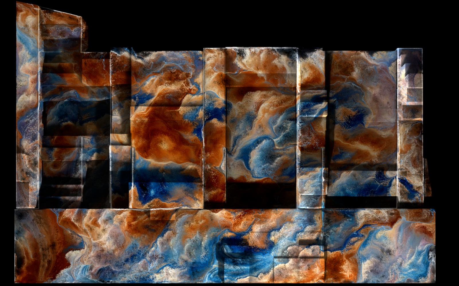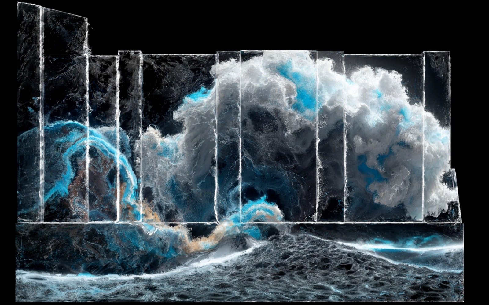 A partir d’aquest concepte, la proposta construeix un paisatge visual en transformació contínua, on les formes emergeixen com a conseqüència del flux i no com a representacions fixes. Les estructures orgàniques i vegetals apareixen com estats temporals del sistema, evocant processos de creixement, adaptació i equilibri. La llum actua com a llenguatge visual que fa visibles aquestes dinàmiques, revelant la memòria del moviment i connectant diferents moments del relat. El paisatge no es crea des de zero, sinó que es construeix a partir de les traces del que ja ha passat, establint una continuïtat entre origen, transformació i persistència.