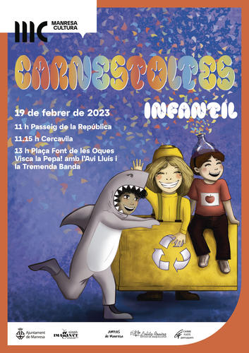 El Carnestoltes Infantil 2023 arriba a la 45a edició. És, com sempre, una festa adreçada sobretot al públic familiar, amb la disbauxa i la gresca com a elements centrals. La cercavila, organitzada per l’Ajuntament de Manresa i Imagina’t, s’iniciarà a les 11.15 h a la Plana de l’Om i la concentració dels grups inscrits es farà al passeig de la República a les 11 h. El recorregut serà a peu, amb algunes carrosses, la carrossa del Rei i la Reina, batucades, grups de música i altres elements d’atrezzo.